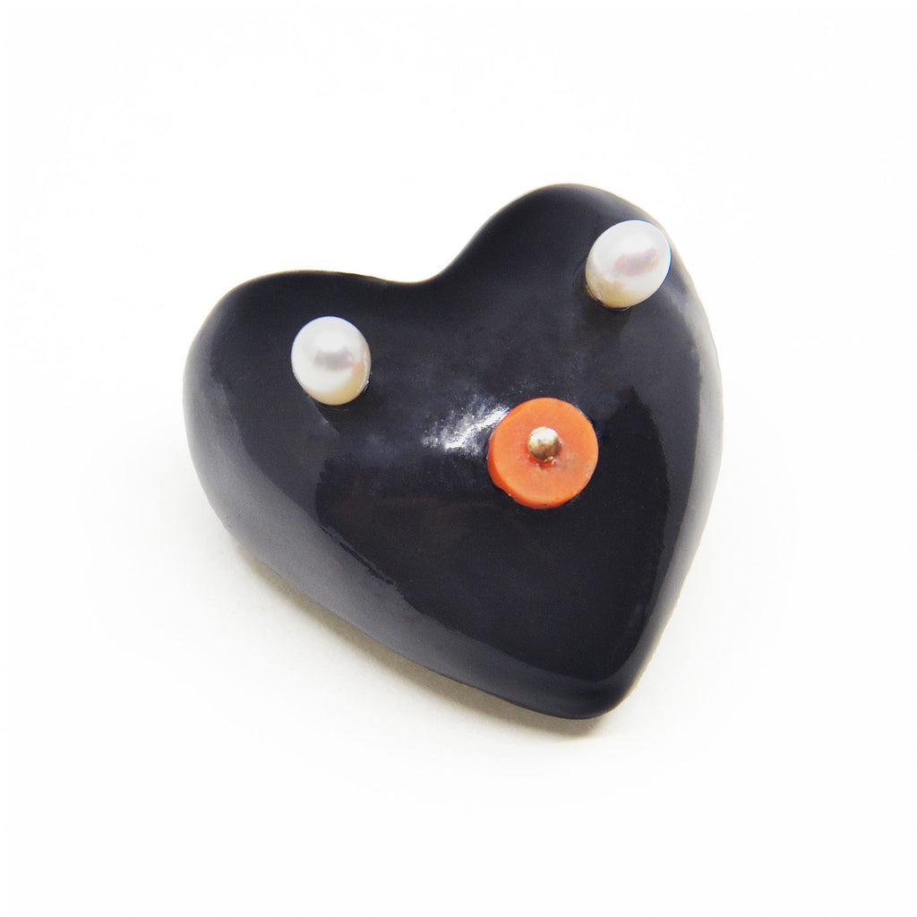 This one-of-a-kind heart shaped pin is handcrafted of porcelain, and glazed in glossy black.