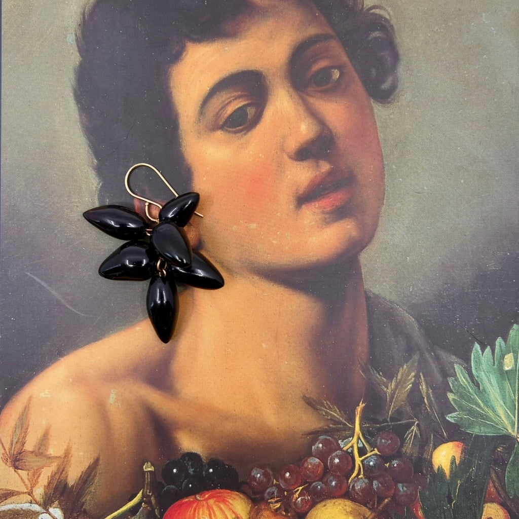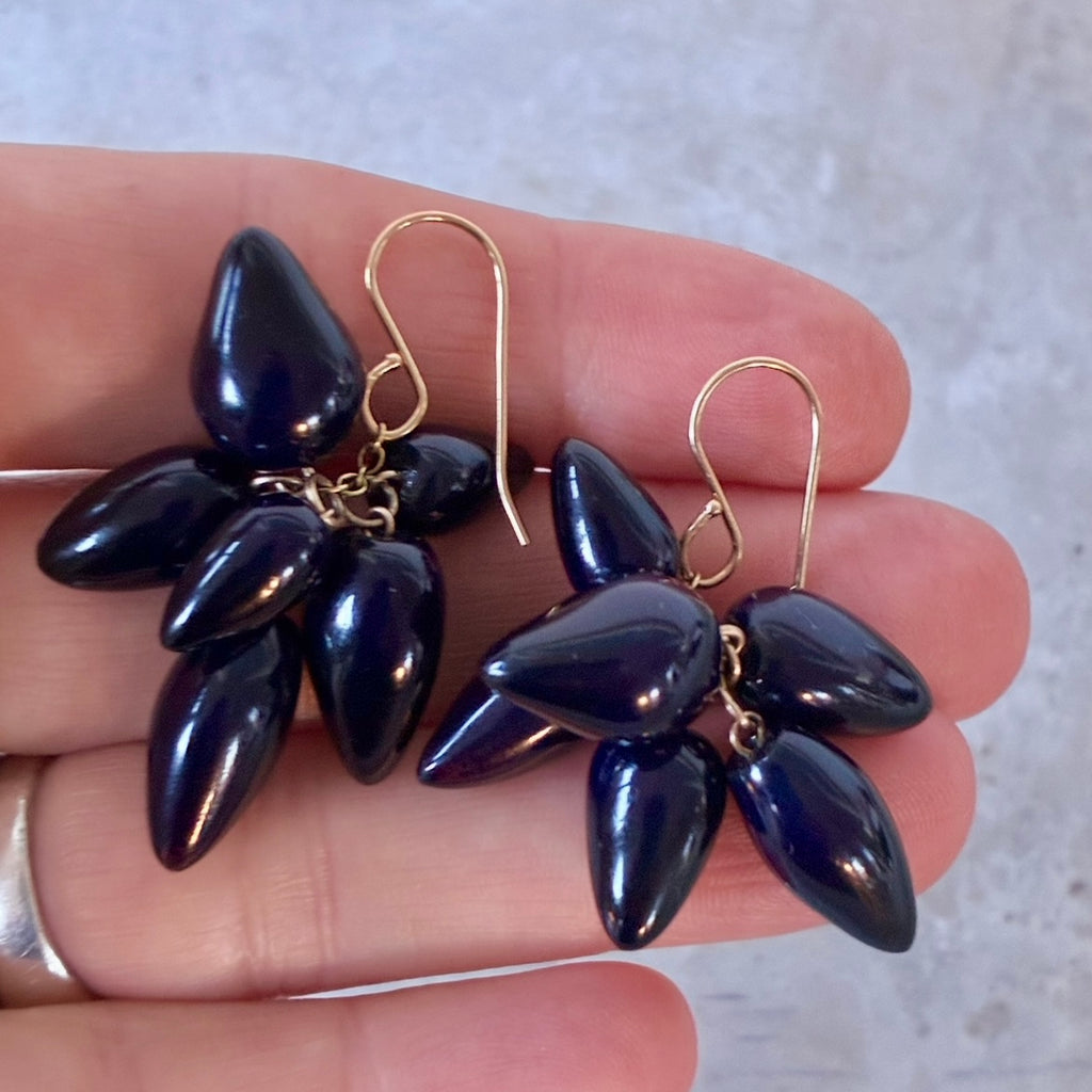 Each earring is comprised of 6 seed-shaped beads, glazed in glossy darkest midnight blue.